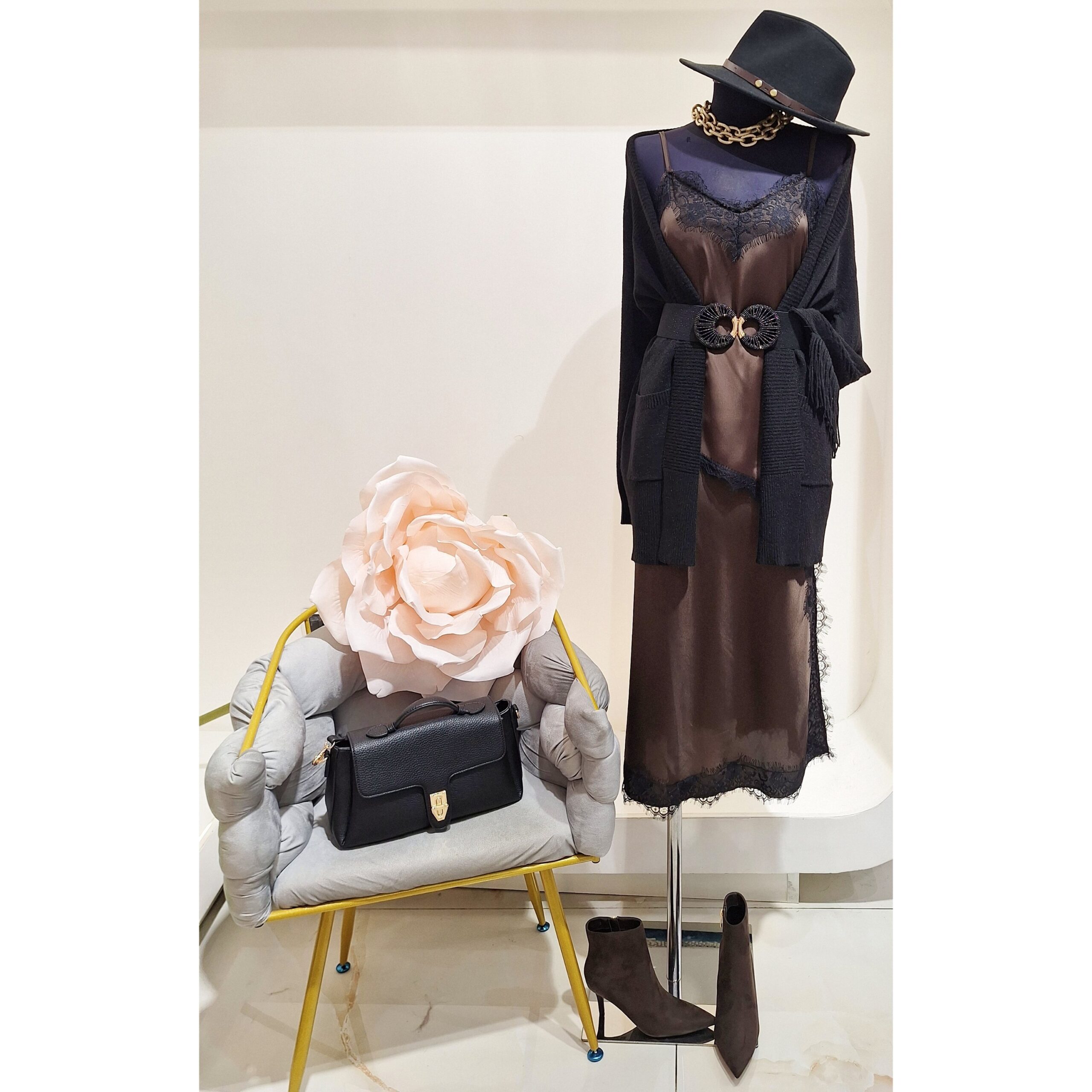 Cardigan aperto senza bottoni con frange dietro le maniche e sulla schiena