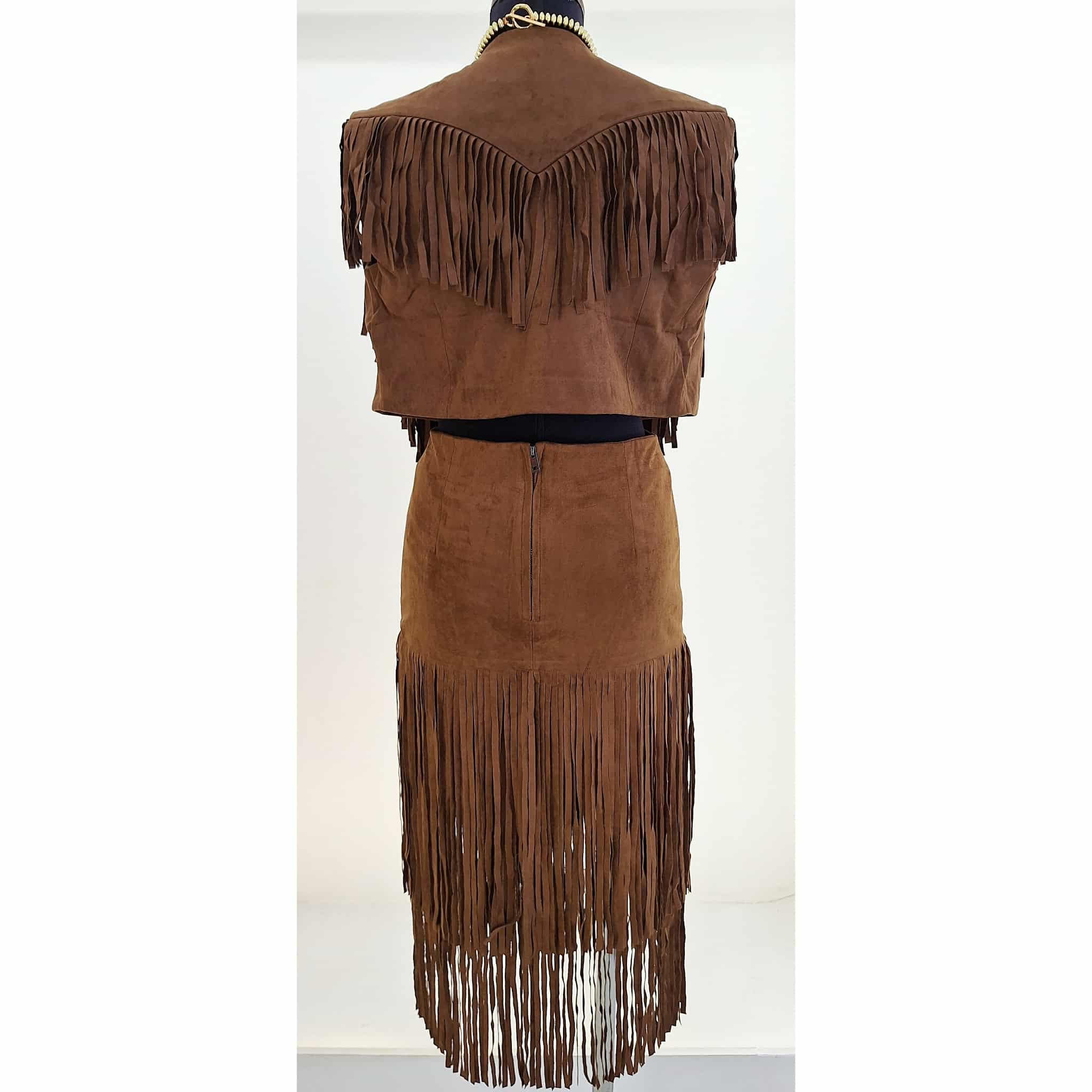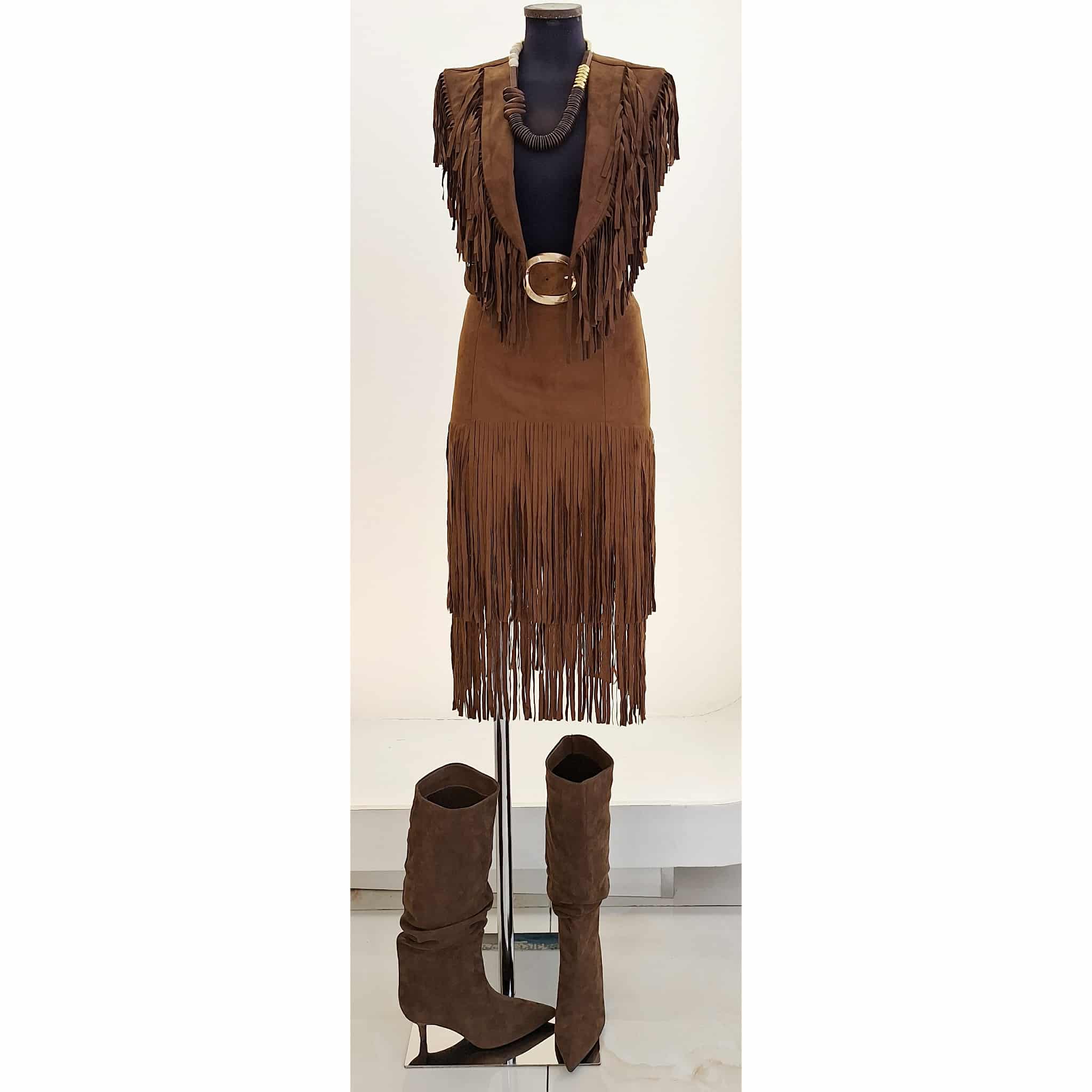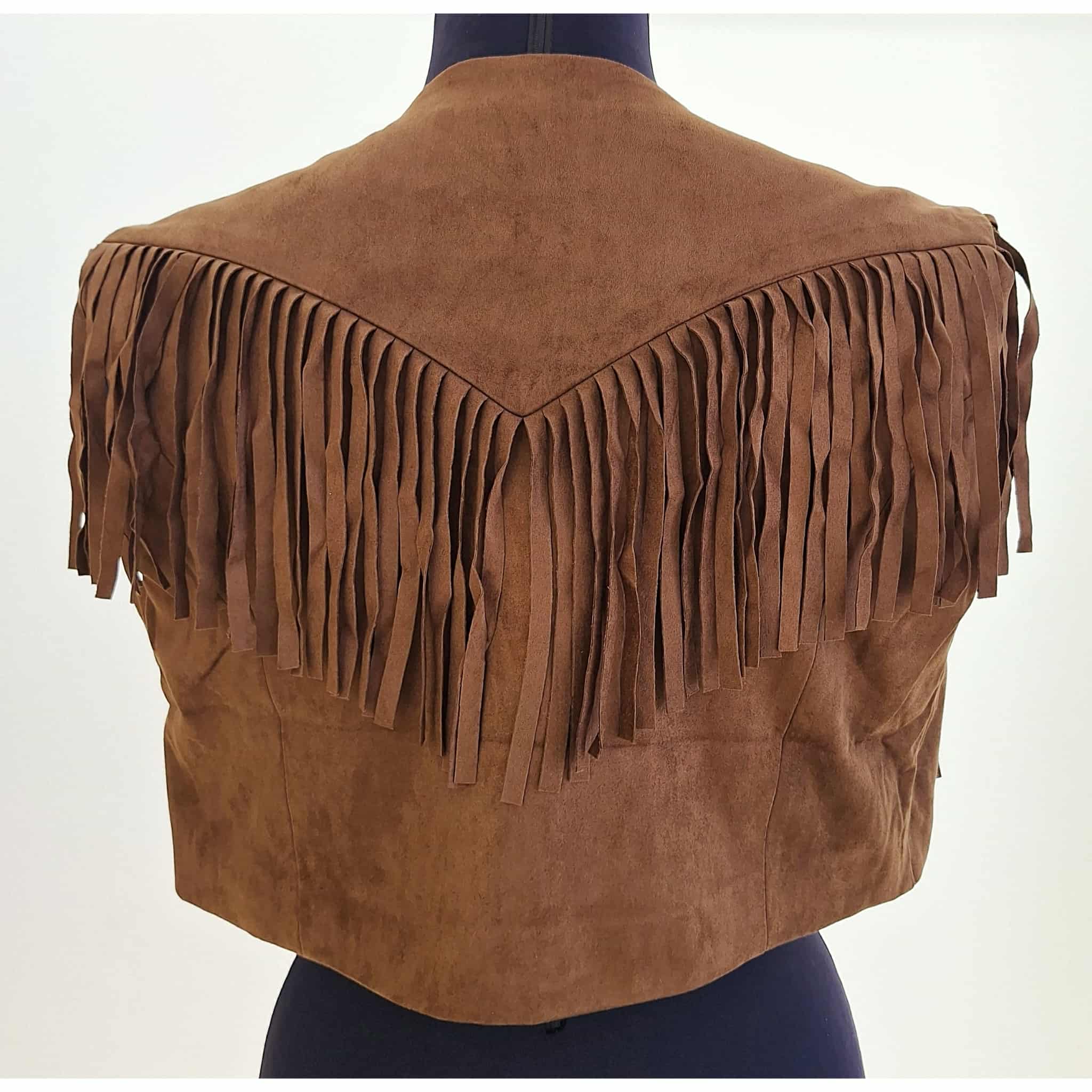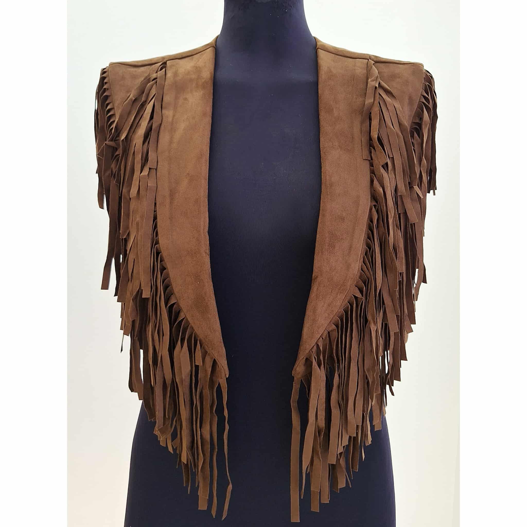 Gilet corto in eco camoscio con frange davanti e sul retro marrone