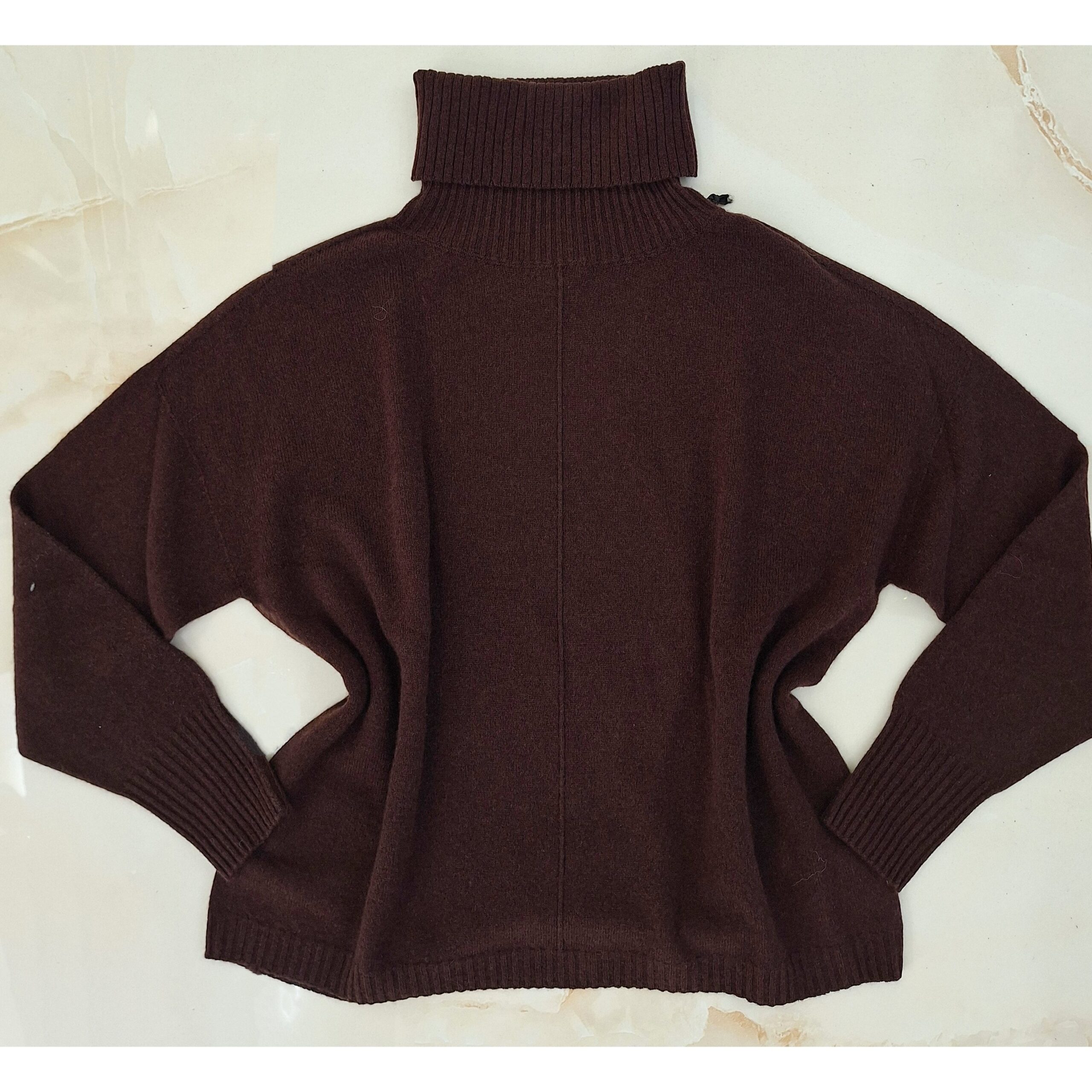 Maglione over marrone con collo in lana e cashmere